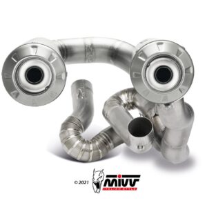 The EVO version, intended for the racing world, is the range of excellence of complete Mivv exhausts, conceived to meet the needs of the teams engaged in the various championships. Developed taking advantage of the experience acquired in the world of racing to the highest levels, like the MotoGP, the Evo version is fully made of grade 1 titanium and the components are all TIG welded.