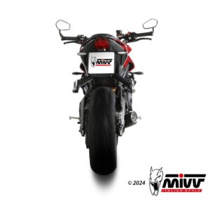 A linha Mivv X-M5 fruto da experiência adquirida nos Campeonatos Mundiais de MotoGP, Moto2 e Moto3, é a síntese perfeita entre estilo de corrida e desempenho. Com um design inspirado nos escapes feitos para o Campeonato Mundial de motociclismo, o silenciador X-M5 tem uma forma cónica e dimensões compactas capazes de libertar o cativante som MIVV.